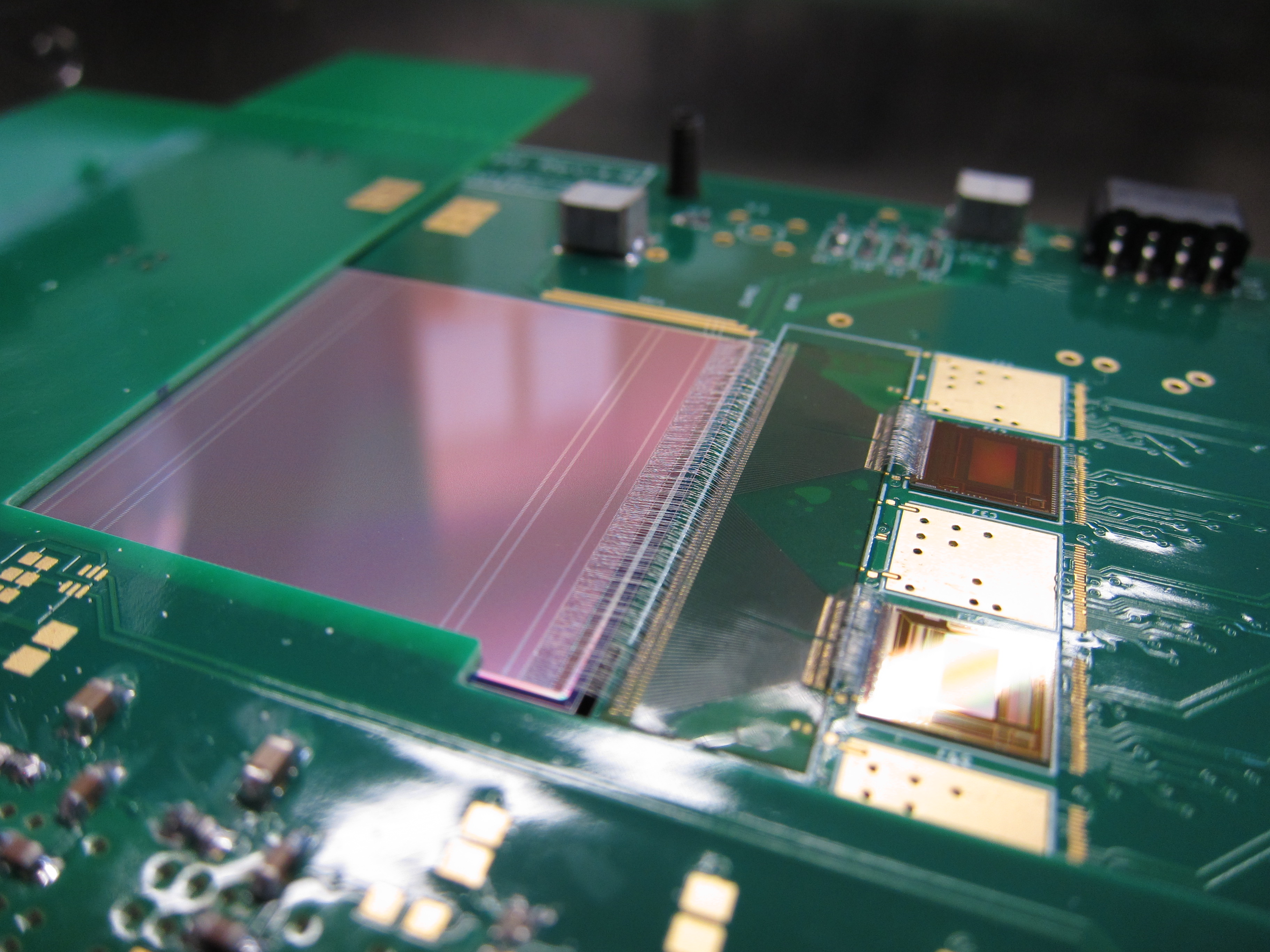 • glueing of the sensor on one board using bi-component non-conductive glue. The PA is aligned to the pads of the PA and therefore only partially to the white markings on the PCB.